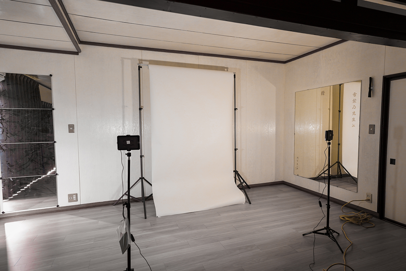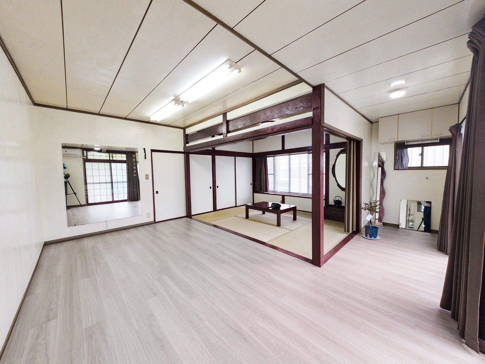 こちらの部屋は、もともと日舞の稽古場として使用されていました。日本舞踊のお稽古・発表会、または着物の着付け教室などにおすすめです。